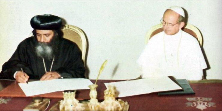 3. We recall with gratitude the historic meeting forty-four years ago between our predecessors, Pope Paul VI and Pope Shenouda III, in an embrace of peace and fraternity, after many centuries when our mutual bonds of love were not able to find expression due to the distance that had arisen between us. The Common Declaration they signed on 10 May 1973 represented a milestone on the path of ecumenism, and served as a starting point for the Commission for Theological Dialogue between our two Churches, which has borne much fruit and opened the way to a broader dialogue between the Catholic Church and the whole family of Oriental Orthodox Churches.