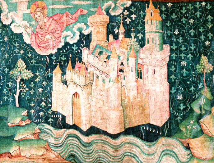 2 καὶ τὴν πόλιν τὴν ἁγίαν Ἰερουσαλὴμ καινὴν εἶδον καταβαίνουσαν ἐκ τοῦ οὐρανοῦ ἀπὸ τοῦ θεοῦ ἡτοιμασμένην ὡς νύμφην κεκοσμημένην τῷ ἀνδρὶ αὐτῆς. |