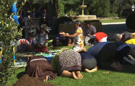 Participants sang and held hands while dancing in a circle around the images, in a dance resembling the “pago a la tierra,” a traditional offering to Mother Earth common among indigenous peoples in some parts of South America. No explanation was provided by the event organizers as to why the dance was performed for the Feast of St. Francis or what it symbolized.