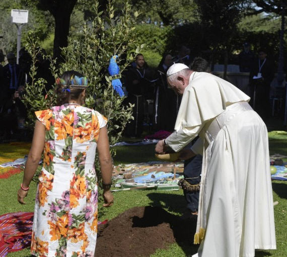 POPE Francis witnessed an indigenous performance at a tree planting ceremony in the Vatican gardens Friday, during which people held hands and bowed before carved images of pregnant women, one of which reportedly represented the Blessed Virgin Mary.