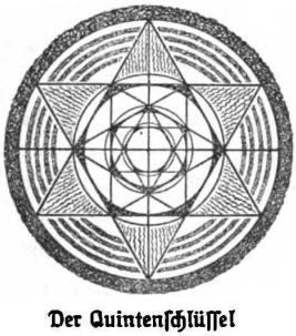 In any case, monumentality is achieved only through a constant contact with eternal and pure measures, the manifestation of which depends on the eternal divine laws of the sacred numbers. These are found close to Divine Unity (The One) itself. They are the closest to God and precisely because of this proximity they are considered sacred. These are the numbers that lead us to the discovery of the human normative ideal. The fundamental form of the eternal Word made flesh is given by the three measures of the quintuple key, with the root of 12 (diameter) as the keynote and its factors, the root of 4 and the root of 3 (3x4=12) - see the figure of the fifth key (Quintenschlüssel) and the fifth step