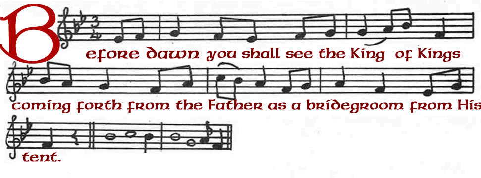 “Cum ortus fuerit sol de Caelo, videbitis Regem regum procedentem a Patre, tanquam sponsum de thalamo suo.”