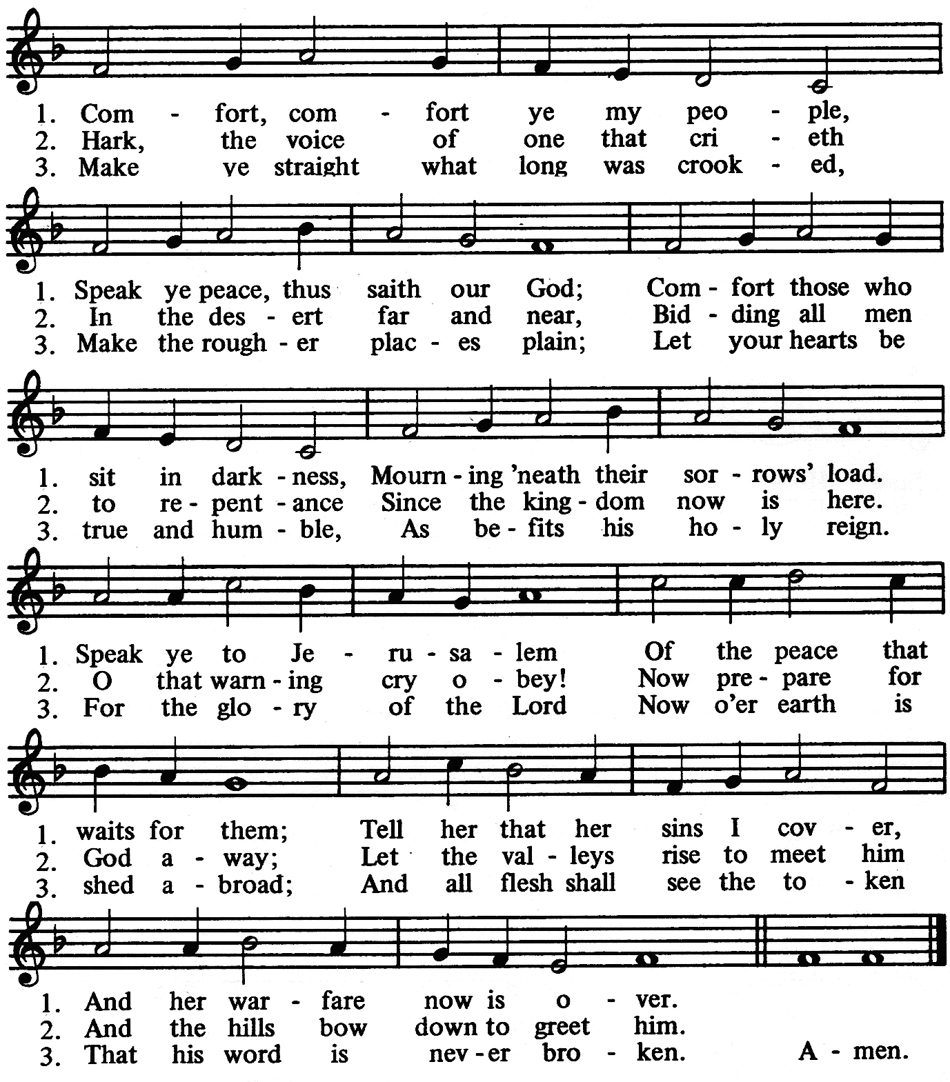 FROM THE PROPHET ISAIAH[44] 24 THUS says the LORD, your Redeemer, who formed you from the womb: “I am the LORD, who made all things, who stretched out the heavens alone, who spread out the earth […] who says of Jerusalem, ‘She shall be inhabited,’ and of the cities of Judah, ‘They shall be built, and I will raise up their ruins’; 27 who says to the deep, ‘Be dry, I will dry up your rivers’; 28 who says of Cyrus, ‘He is my shepherd, and he shall fulfil all my purpose’; saying of Jerusalem, ‘She shall be built,’ and of the temple, ‘Your foundation shall be laid.’” [45] THUS says the LORD to his anointed, to Cyrus, whose right hand I have grasped, to subdue nations before him and ungird the loins of kings, to open doors before him that gates may not be closed: 2 “I will go before you and level the mountains […] I am the LORD, and there is no other, besides me there is no God; I gird you, though you do not know me, 6 that all may know, from the rising of the sun and from the west, that there is none besides me; I am the LORD, and there is no other. 7 I form light and create darkness, I make weal and create woe, I am the LORD, who do all these things.” 8 “SHOWER , O heavens, from above, and let the skies rain down righteousness; let the earth open, that salvation may sprout forth, and let it cause righteousness to spring up also; I the LORD have created it.”