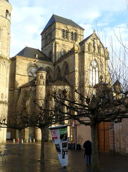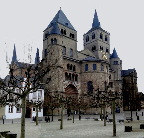 THE central chapel of the Trier Cathedral is made of Roman brick, and was commissioned in the fourth century by St. Helena, mother of the Emperor Constantine. Destroyed first by the Franks and later by the Vikings (in 882) it was restored by Archbishop Egbert around 990, and the present facade was completed in 1196. The baroque chapel in the apse houses the purported relic of the Tunica Christi, the seamless robe of Christ, which is seldom displayed for veneration. During the middle ages the Archbishop of Trier was important in both Church and state as a Prince-Elector of the Holy Roman Empire.
